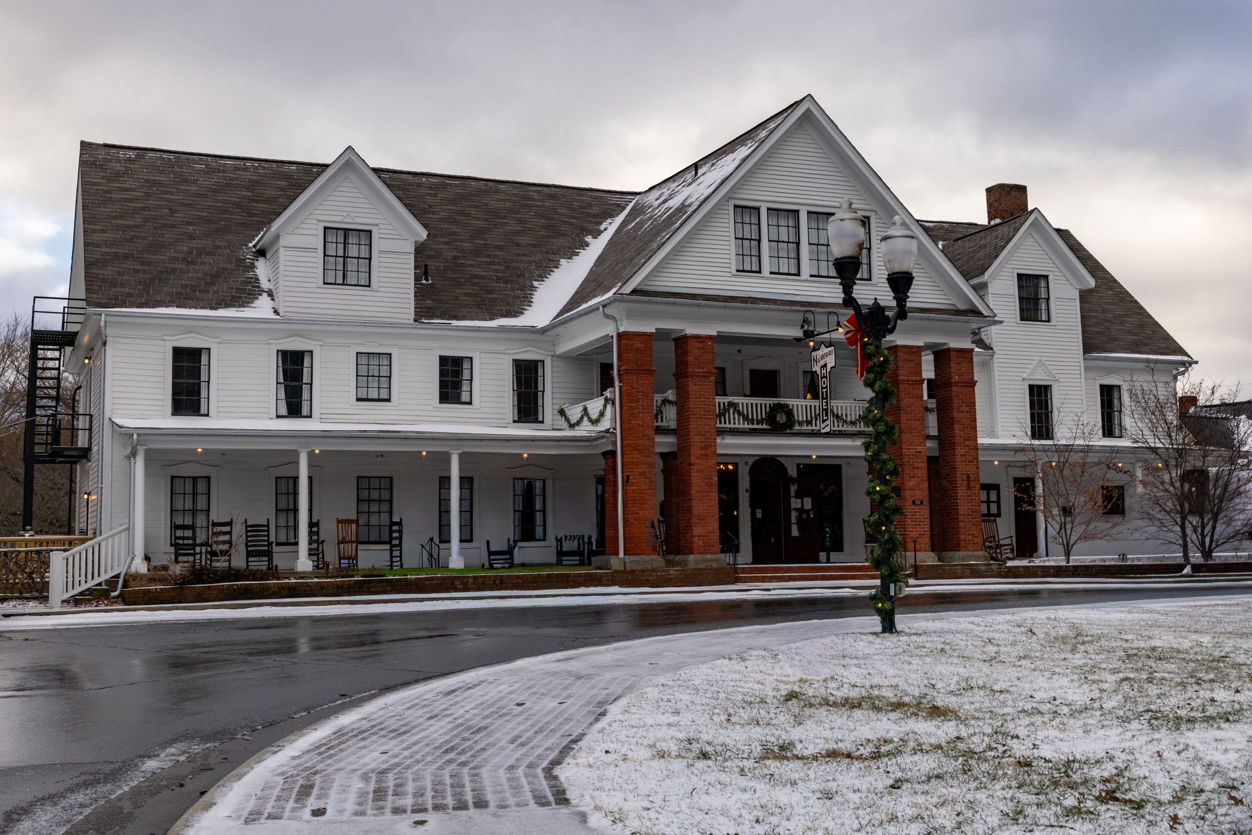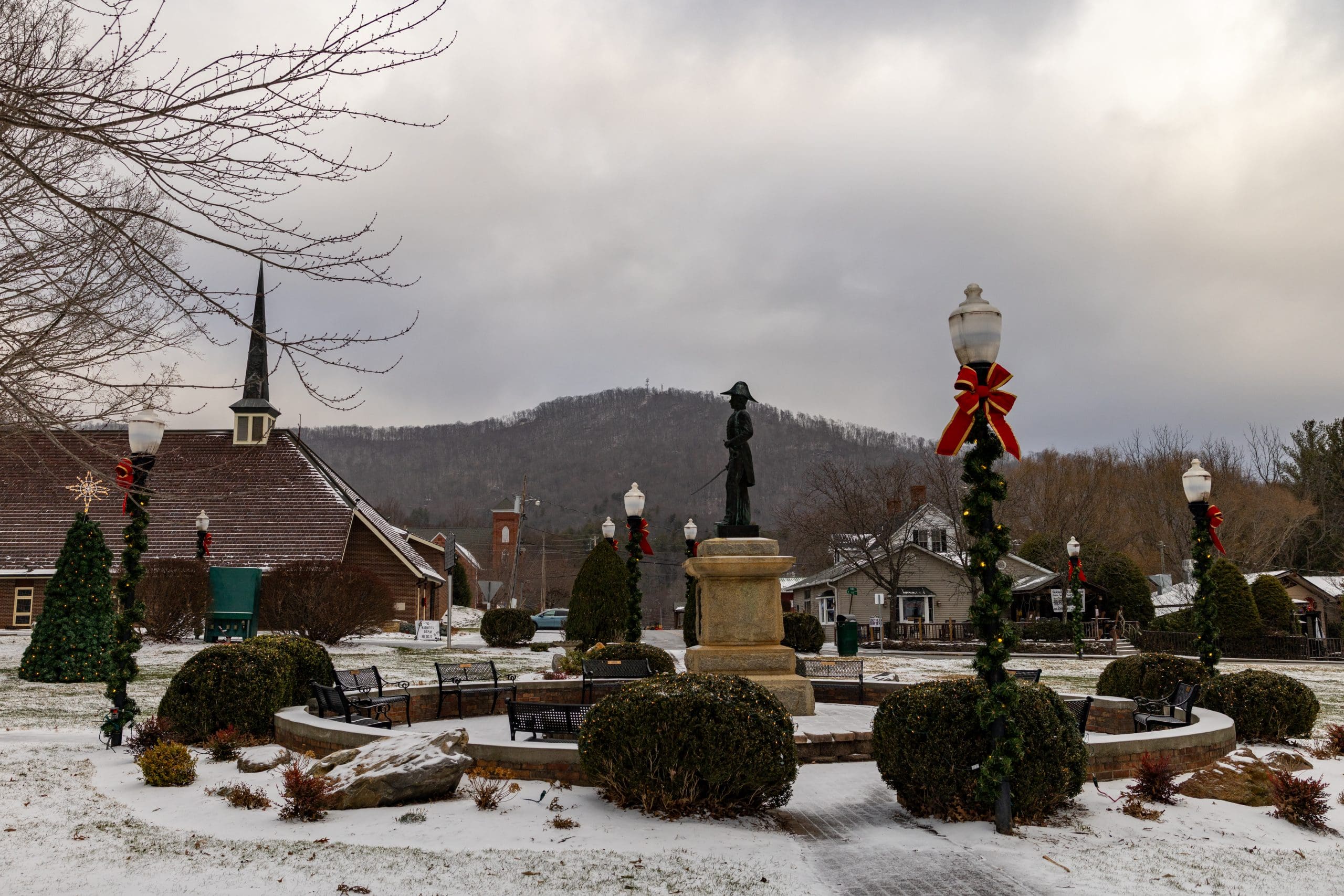 During the holiday season, the NuWray Hotel becomes one of the most festive spots in downtown Burnsville. This historic hotel sits right on the Town Square, and at Christmas it feels like a classic small-town holiday scene straight out of a postcard. Soft lights, wreaths, and seasonal touches bring a warm glow to the building, especially in the evenings when the square is lit up for the season.