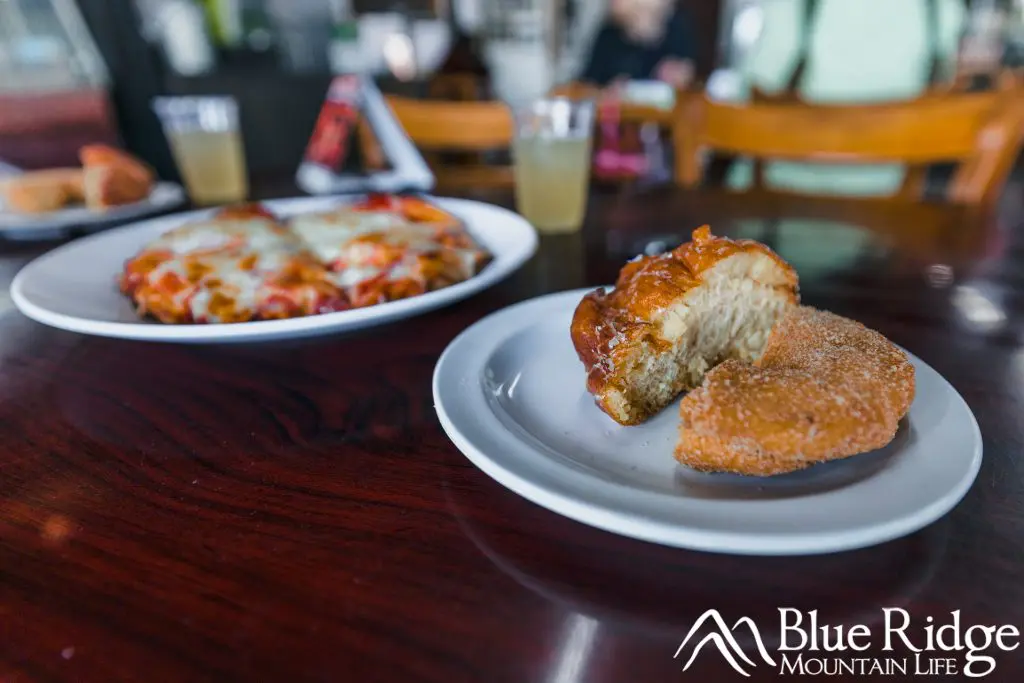 Dom Bakeries was our first stop on the Blue Ridge Food Tours, and it was a great way to kick things off. We sampled their cheese pizza and an apple cider donut — both simple but delicious. The pizza had that classic New York–style flavor, and the donut was soft, sweet, and full of fall flavor.