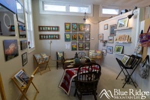 The gallery is warm, welcoming, and full of personality, featuring everything from paintings, pottery, and photography to jewelry, fiber art, woodwork, and more. Each piece reflects the beauty and spirit of the Blue Ridge Mountains, and many of the artists are often on-site, happy to share the stories behind their work.