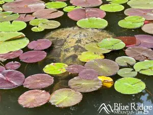 Beautiful natural landscapes surround the park, including tall trees, open green spaces, and picturesque views of the Blue Ridge Mountains. There are lots of flowers, and a beautiful creek flows right through the middle and has small waterfalls.